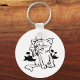 Um design de bonitinho estilo cartoon de um gato preto e branco. Este gato está sentado e com a língua para fora. O gato é, na sua maioria, branco e tem fundo preto. Este design de gato preto e branco parece excelente neste chaveiro. Perfeito para si mesmo ou como presente