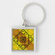 Três estilos de fractais desenhados à mão, incluindo triângulos Siepinski, juntas aplonianas, e um design quadrado com temas semelhantes, compõem as camadas desta mandala geométrica, sobrepostas num gradiente amarelo e laranja brilhantes.