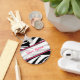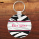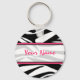 Um chaveiro com fundo de impressão em zebra preto-e-branco e uma forma rosa-quente. Personalize com seu nome na seção central.
