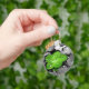 Chaveiro preto e branco com um Lily-pad verde brilhante no meio.