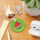Ícone da fatia de melancia vermelha. Cor de fundo personalizada. Texto personalizado de ambos os lados.