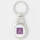Adicione suas iniciais ou outro texto para personalizar este Chaveiro de metal simples e quadrado moderno em roxo e branco. Esta moda e chaveiro chic fariam um presente perfeito.
