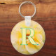 Chaveiro de monograma personalizado de Rosa Amarela. Design de fotografia floral. Macro de flor de rosa amarela. Personalizar com o nome personalizado inicial ou texto.