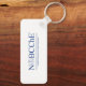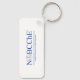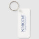 Chaveiro de metal retangular exibindo o logotipo azul NOBCChE em ambos os lados.