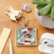 Esta bela chaveiro de fotos de feriado apresenta seu nome personalizado e folhas verdes botânicas rústicas com flores vermelhas bonito.