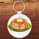 Este design é um cheio de pratos de panquecas deliciosas. No prato estão três panquecas com xarope de bordo rolando sobre eles e um pouco de manteiga derretendo no topo. Eles parecem tão deliciosos. Este design de panquecas parece excelente neste chaveiro. Perfeito para si mesmo ou como presente