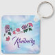 Personalize este Chaveiro de Hummingbird único de "Um tipo"! Ele apresenta um néctar de beija-flor de lindas flores grandes rosa e roxas em um fundo de nuvem roxo e rosa! Pintura de arte original do artista Kerry Miller.