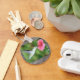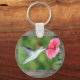 Chaveiro de beija-flor com beija-flor alimentando-se de néctar de uma flor rosa.