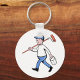 Este design é bom para qualquer pintor, já que é de um pintor a caminho do trabalho. Este pintor é um carregando de tinta e tem um cilindro de tinta sobre um ombro. Ele está vestindo um boné e parece que está indo para um emprego. Este pintor parece excelente neste chaveiro. Perfeito para si mesmo ou como presente