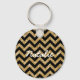 Hip e Trendy Chevron Glitter Look Chaveiro. Este legal chaveiro apresenta um padrão de zag em forma de guincho em cima de um fundo de brilho dourado da arte digital. Adicione texto a este design para lhe dar um toque pessoal.