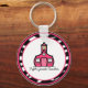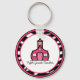 Um chaveiro com o logotipo da dentro da escola cor-de-rosa com um quadro de impressão zebra cor-de-rosa. O texto diz "Professor do 5º ano".