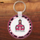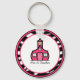 Um chaveiro com o logotipo da dentro da escola cor-de-rosa com um quadro de impressão zebra cor-de-rosa. O texto diz "Professora Pré-K".
