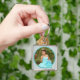 Este chaveiro superior do modelo da foto das bolinhas da prata e do aqua é mostrado aqui para um Quinceanera, mas você pode personalizar o texto e a foto para fazê-la o que quer que você quer.