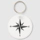 Chaveiro branco com símbolo de bússola preto e cinza.