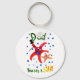 Um chaveiro com um design de colagem de papel pintado à mão de um peixe-estrela dançante e um jovem peixe-estrela dizendo, 'Pai, você é uma estrela!' Adequado para Dia de os pais ou aniversário de um pai. Consulte também cartão de saudação, presentes e roupa.