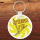 Diversão do chaveiro de percussão de insinuação lê, "Stick It!" com um par de paus na frente de uma espiral amarela brilhante. Feito apenas para bateristas, quer estejam marchando bandas, tambores, ou balançando numa banda de rock.