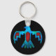 Chaveiro preto com sabiá vermelho e azul estilizado.