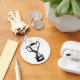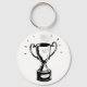 Este design é um troféu preto e branco. O troféu é o tipo de aparência tradicional com uma xícara e duas alças. Parece estar brilhando no topo. Este design de troféu preto e branco parece excelente neste Chaveiro