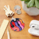 Imagem de guitarras em vermelho, roxo, rosa e laranja sobre fundo escuro.