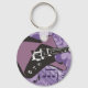 Vamos tocar música. Esta design é de uma incrível guitarra elétrica. É colocado contra um fundo roxo musical que parece legal. Você pode apenas ouvir a música vindo deste violão. Este design de violão elétrico parece excelente neste chaveiro. Perfeito para si mesmo ou como presente