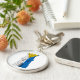"(Sem Fio) Uma torre por pall ou, argent e azure." A cor de fundo (mostrada em branco) pode ser alterada mediante solicitação.