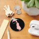 Deixe-o chover. Um design de vetor minimalista com uma mulher de vestido cor-de-rosa segurando um guarda-chuva rosa enquanto as gotas gigantes caem sobre ela. Um presente de excelente para fãs de dias chuvosos, arte minimalista e design digital.