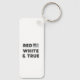 Este chaveiro apresenta um design ousado e patriótico com a frase "RED WHITE & TRUE" em letras maiúsculas. A design inclui uma imagem da bandeira dos Estados Unidos em escala de cinza, posicionada à direita do texto. Feito de material durável de alta qualidade, esta chaveiro é perfeita para mostrar seu orgulho nacional. Seu tamanho compacto o torna um na moda e acessório prático para suas chaves, bolsas, ou como um presente pensativo.