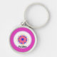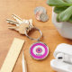 Um frisbee branco com designs cor-de-rosa e azuis sobre fundo rosa. A palavra "frisbee" pode ser alterada ou removida. O melhor esporte em disco voador.