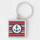 Design náutico com decoração em forma redonda com âncora sobre fundo listrado vermelho, azul e branco