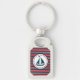 Design náutica com decoração de embarcações à vela em forma redonda com estrelas sobre fundo listrado vermelho, azul e branco