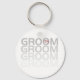 Correspondência entre camisetas de design de noiva e noivo, bolsas, mousépias, canecas e muito mais com texto de cinza que lê "Groom" várias vezes com a ocorrência de apagão.