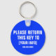 Devolva esta Chave para. . . adicione seu nome pessoal ou comercial e telefone ou outras informações para personalizar. Certifique-se de que recupera as chaves com este chaveiro de lembrete personalizado. Altere a cor do plano de fundo se quiser (editar menu/plano de fundo).