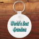 Corrente chave com a melhor avó do mundo em texto verde azul 3D. Correntes de chave redondas e quadradas disponíveis em vários tamanhos.