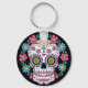 O crânio de açúcar Dia de los Muertos está cercado por flores coloridas.