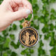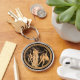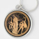Grande chaveiro de metal redondo de alta qualidade com uma imagem de ouro e preto de Dionísio, deus do fazer de vinho e vinho e loucura ritual, e os satyres.