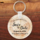 Crie uma impressão duradoura e convide seus entes queridos a salvar a data do seu casamento rústico com o chaveiro de salvar a data de casamento em madeira cortada rústica personalizado. Este chaveiro único e charmoso apresenta um fundo de madeira impresso, reminiscente de um disco de madeira cortada rústica, adicionando um toque de elegância rústica às suas preparações de casamento.