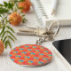 Um Chaveiro com uma FOB bonito, com um padrão de falso-patchwork estilo country de hexágonos de laranja distante Floral, vermelha, amarela e laranja e Bolinhas brancas sobre fundo laranja. Coordena-se com o alcance do Orange Fizz.
