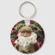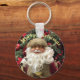 Esta adorável chaveiro festiva apresenta um Papai noel alegre, rosado, à moda antiga em frente à folhagem de Natal e o texto editável "Feliz Natal" "Perfeito como acessório sazonal, presente ou estocante.