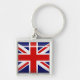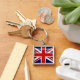 Bandeira lustrosa corajosa grande do botão 3d do Reino Unido ou igualmente conhecida como Union Jack em um chaveiro em cores vermelhas, brancas, e azuis vívidas.