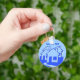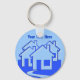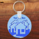 Gráfico personalizado de casas em chaveiro de cor azul. Pronto para o seu texto. Rubrica de promocionais de excelente para corretores imobiliários, corretores hipotecários, construtores, indústria da construção e qualquer pessoa no setor doméstico. Consulte canecas, botões, pinos e atalhos correspondentes na loja de placas MVD.