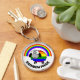 Este chaveiro de orgulho caprichoso apresenta uma ovelha com cores arco-íris. No topo, no arco-íris e no fundo, texto que lê RAINBOW ORGULHO.
