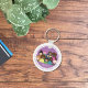 Um chaveiro branco e roxo com um retrato de um grupo de senhoras com um fundo bem diferente. Perfeito para entregar no seu evento do Dia Internacional da Mulher em 8 de março. © ArianeC Illustrations-Todos os direitos reservados