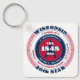 O Chaveiro de Wisconsin tem um design de tipografia circular com cores vermelha, branca e azul sobre fundo branco. O texto inclui o nome, capital, abreviação de estado, nome do residente, região, fuso horário, coordenadas geográficas, ano de sua soberania e país - Estados Unidos da América. Ideia patriótica única de presente.
