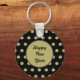 Tenha um Feliz ano novo... no estilo de vintage... Um fundo preto com bolinhas douradas... um círculo central dourado com letras negras e sotaques de cinzas escuras... lê... "Feliz ano novo"... Excelente pequena ideia de presente... estocar o gafanhoto... o favor da festa... para o Natal ou o Ano Novo... ou adicionar um pouco de espírito de férias vintage às suas próprias chaves...