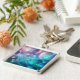 Uma fantasia colorida do espaço sideral estudada com estrelas. O céu intergaláctico está cheio de planetas e estrelas correndo pelo espaço como bolhas abaixo de um riacho.