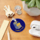 Ilustração da jukebox retro azul e laranja. Cor de fundo personalizada. Texto personalizado de ambos os lados.