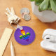 Chaveiro redondo com símbolo fleur-de-lis (fleur-de-lys ou flor de lírio) com faixas arco-íris de LGBT (pessoas lésbica, gay, bissexual e transgênero), orgulho gay design