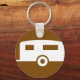 Este design é um caravana. A placa tem uma caravana sobre um fundo castanho. Este design de parque de caravanas parece excelente nesta Chaveiro