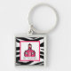 Um chaveiro para os professores que caracterizam um fundo do impressão da zebra. Logotipo cor-de-rosa da escola dentro do quadrado no centro. Personalize com seu nome.