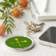 Vert, dois trompetes de hetero em saltaire, sinos em chefe. Crachá de diretor para o seneschal de um grupo dentro da Sociedade de Anacronismo Criativo.